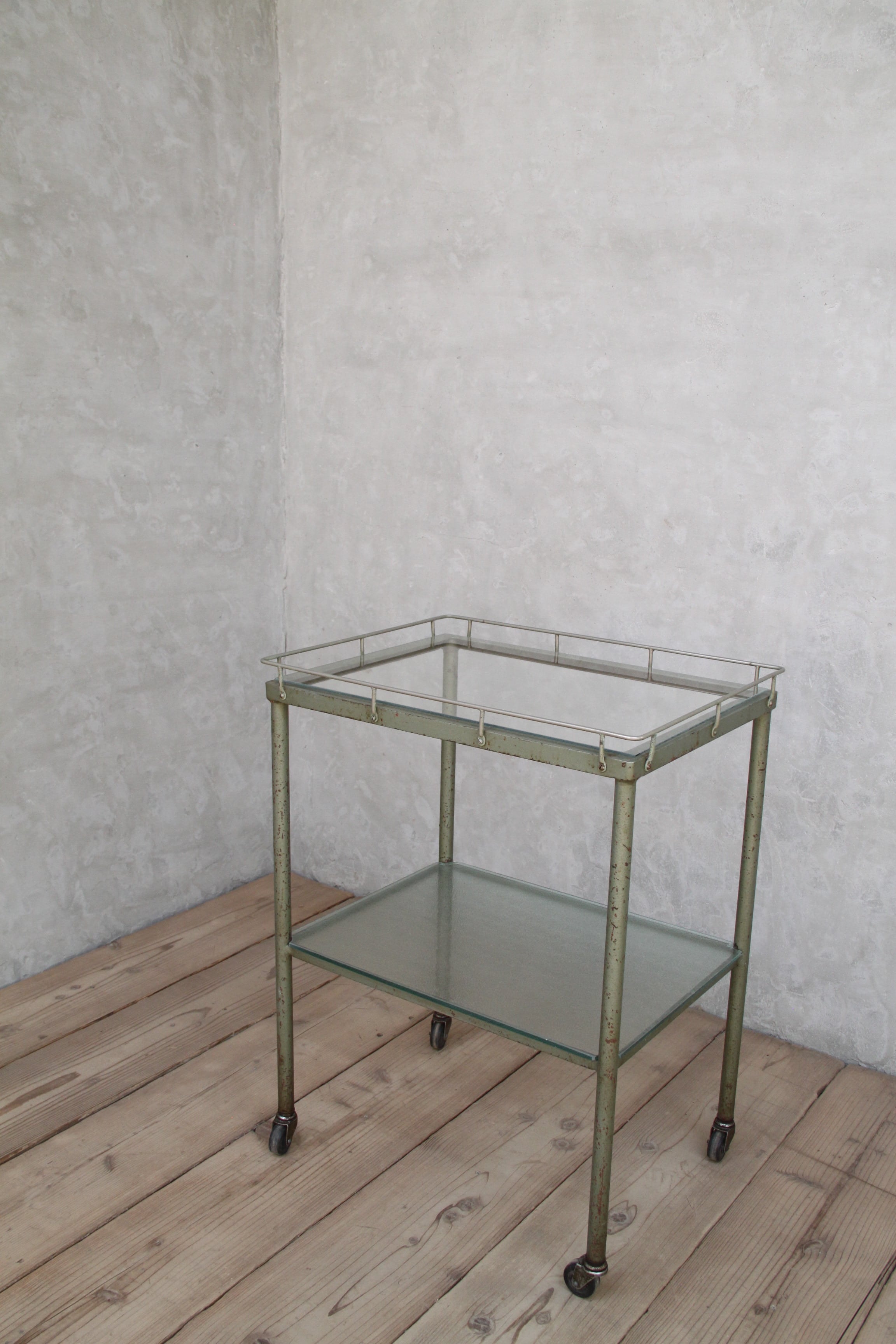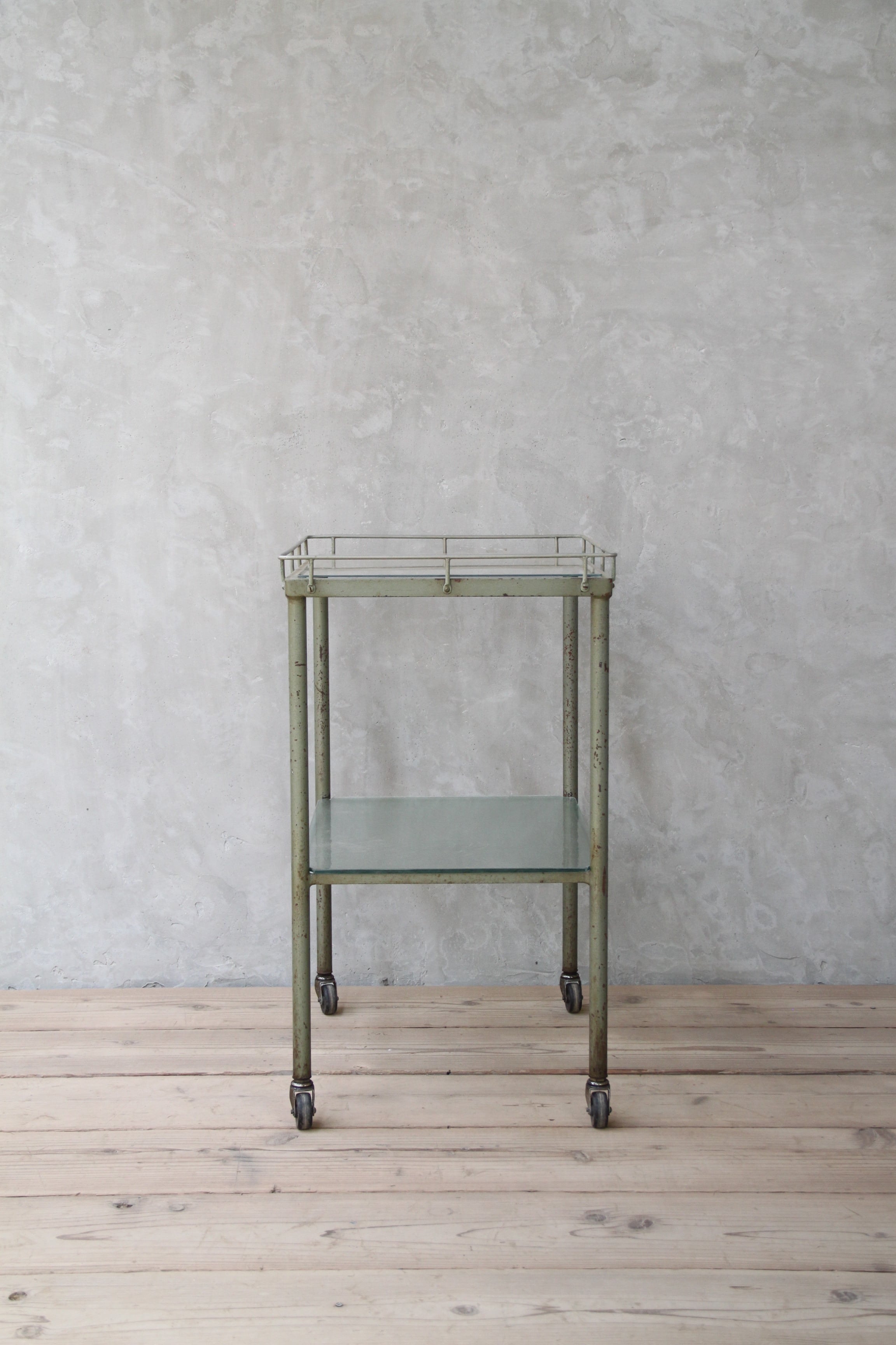 キャスター付きシェルフ(ガラス天板) 古家具/古道具/アンティーク/台/キャスター付き/シェルフ/配膳代/カフェ/エレクター