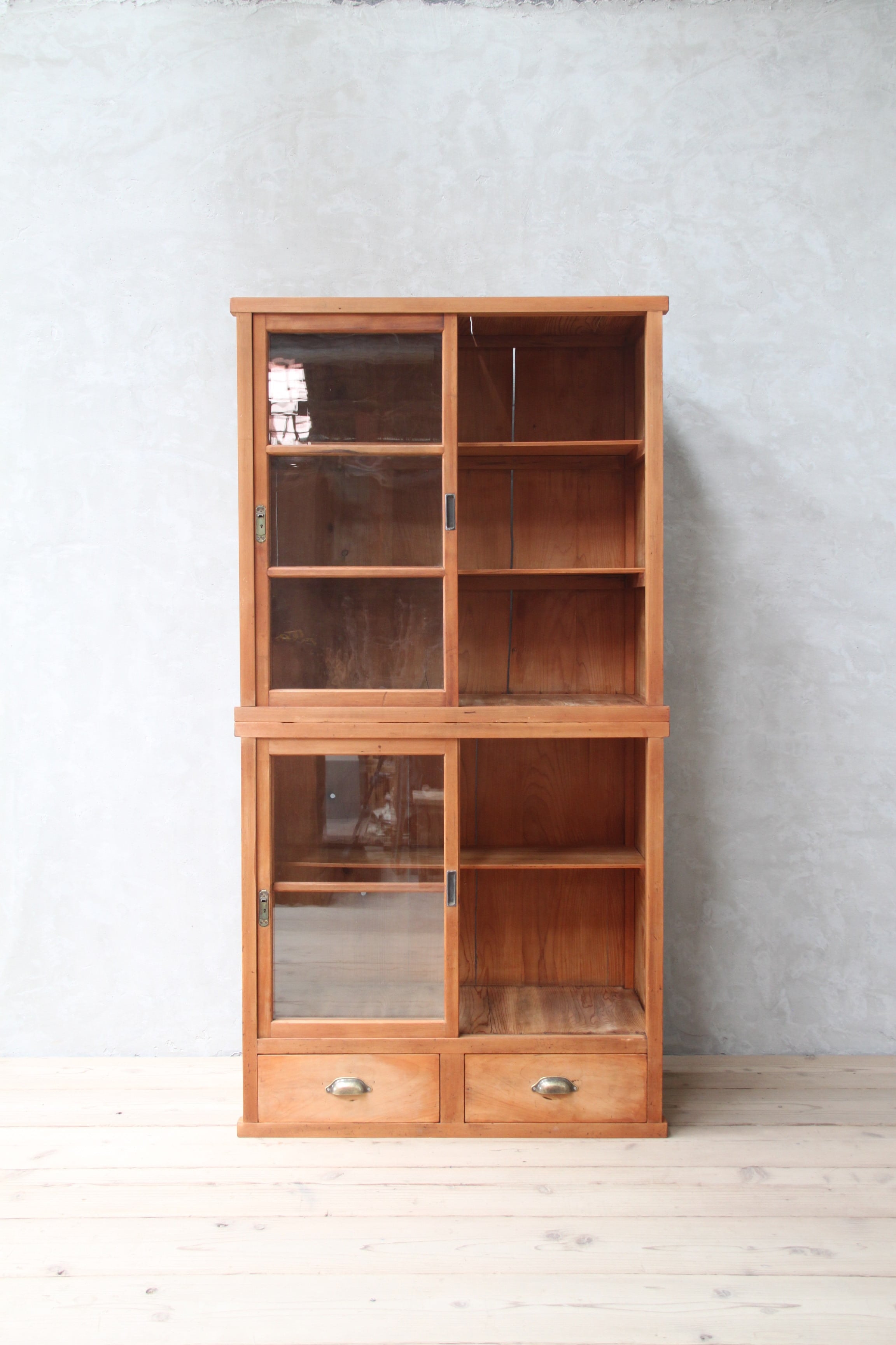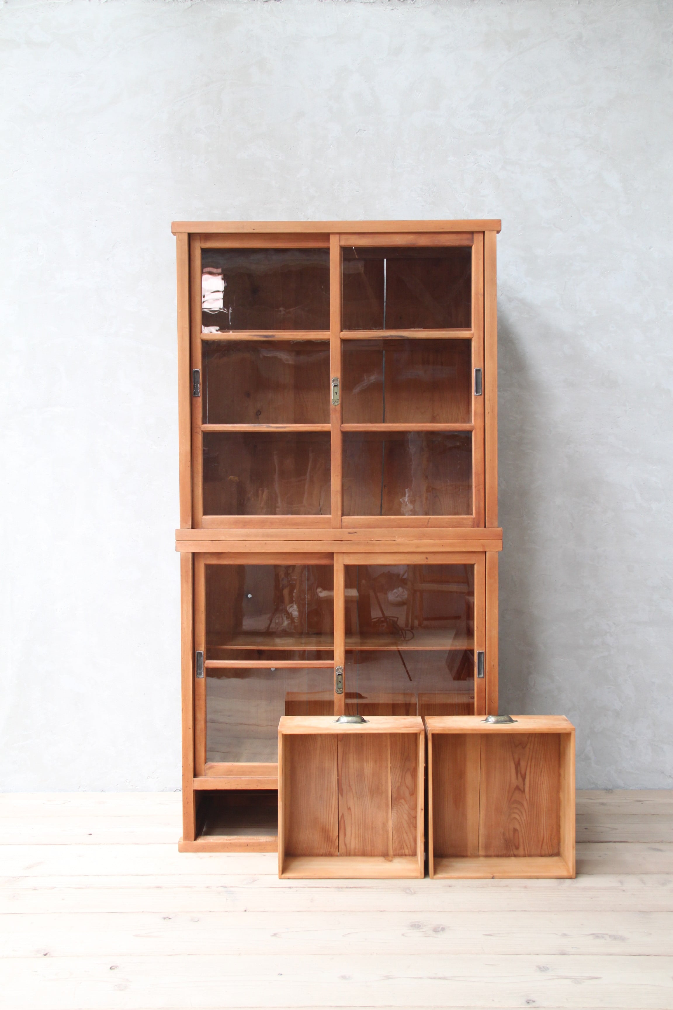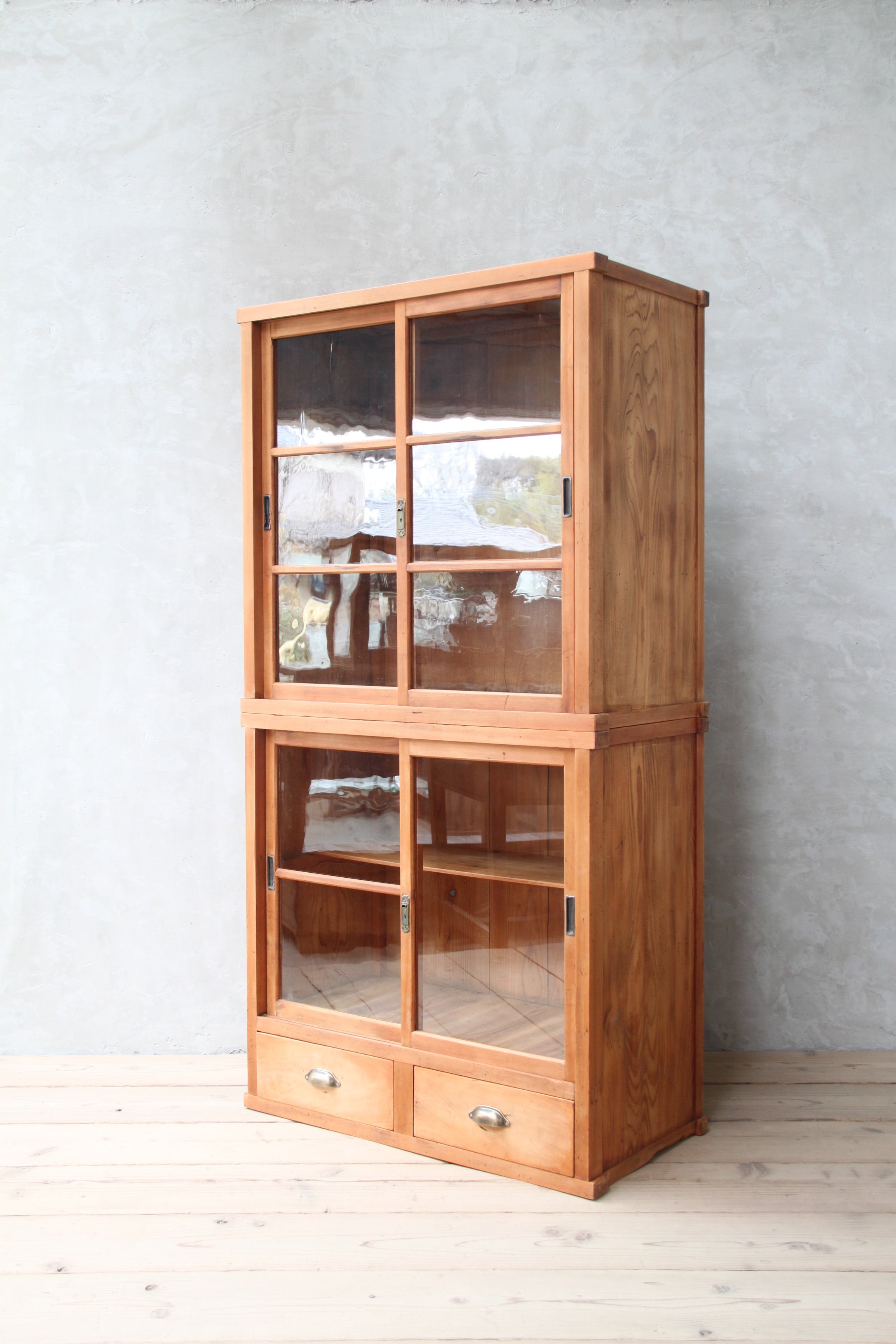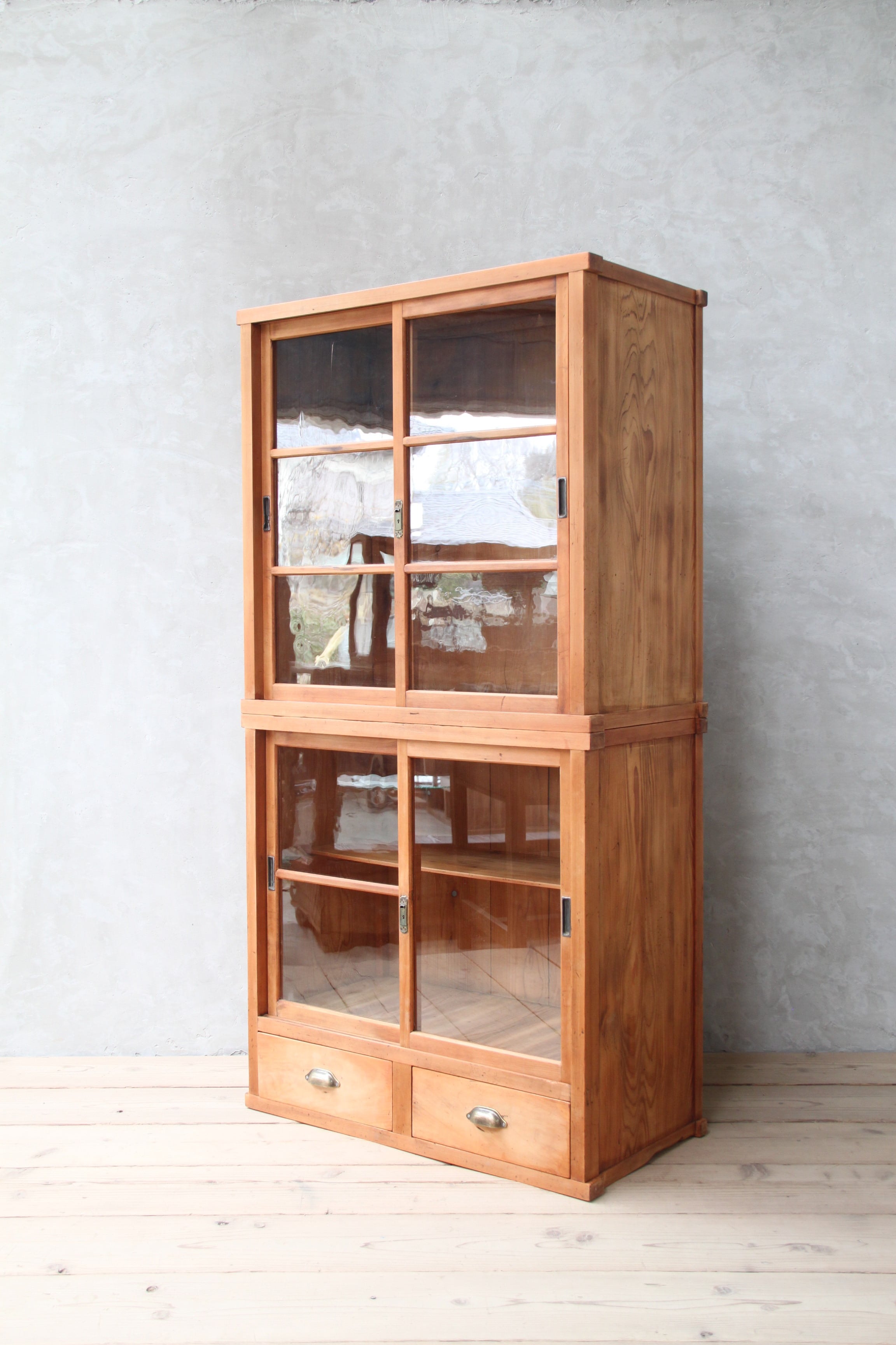 2段のガラスケース 古家具/アンティーク/ガラスケース//収納/ガラス棚/茶箪笥/水屋