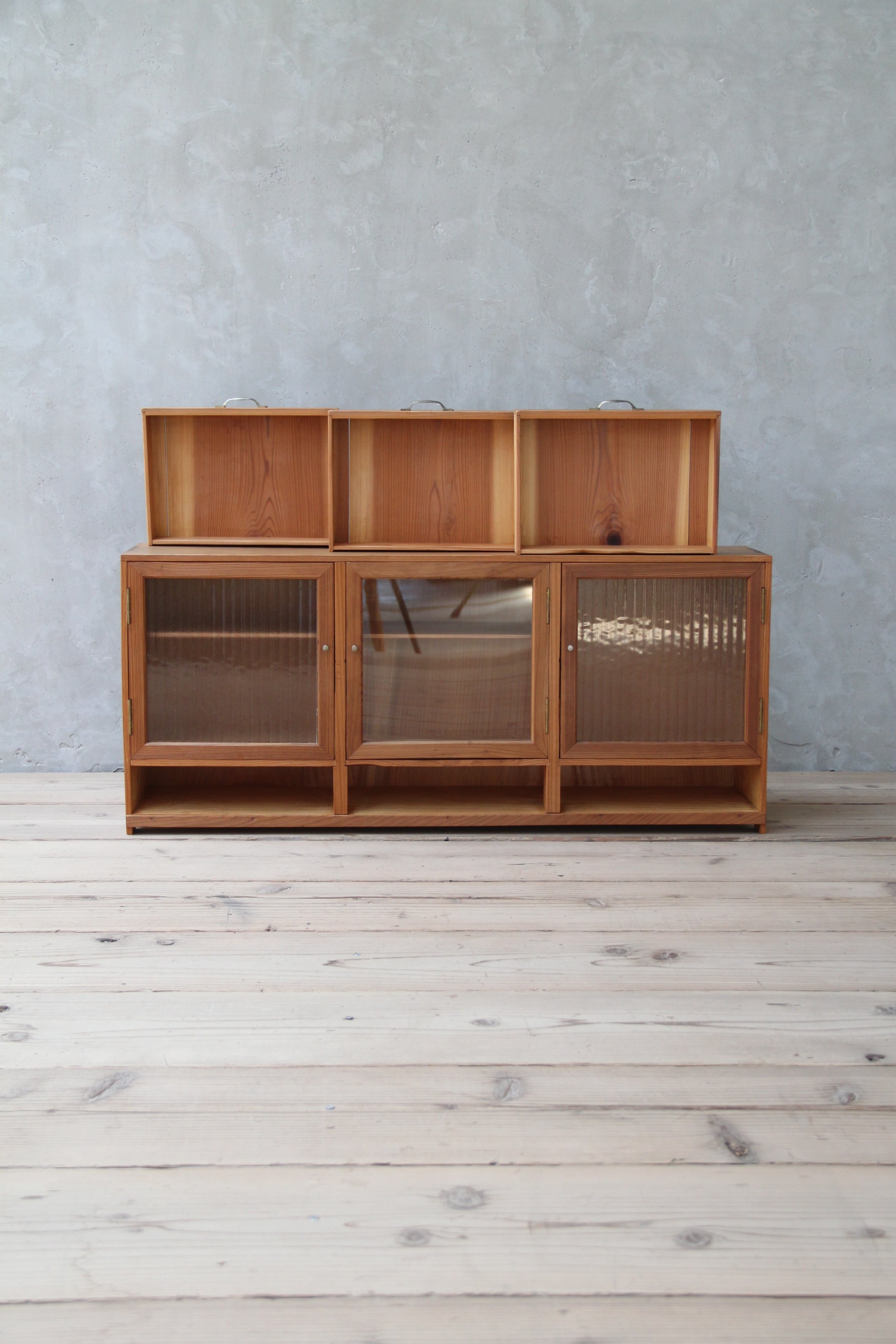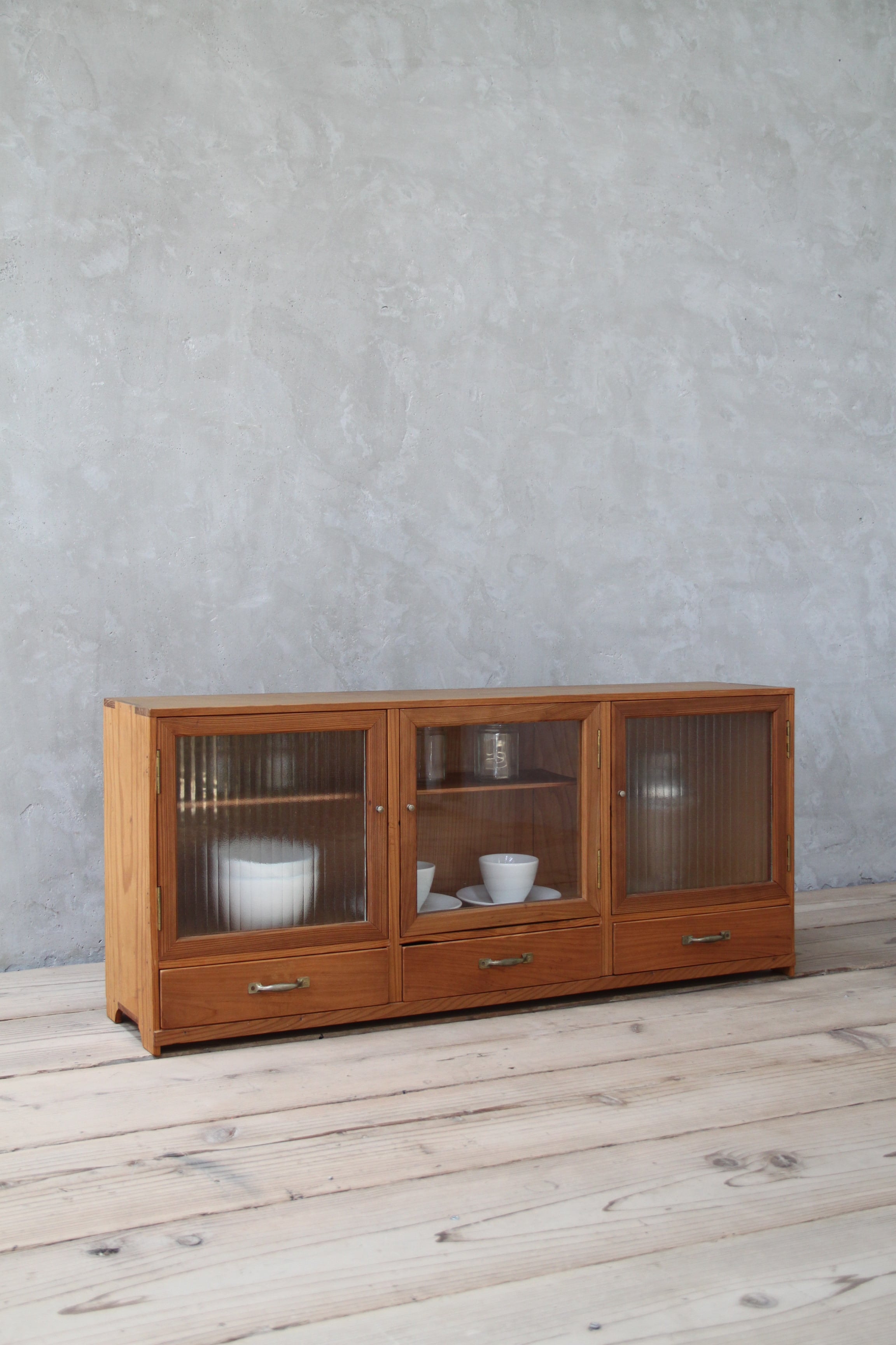 モールガラスのガラスケース 古家具/アンティーク/棚/無垢/収納/ガラスケース/食器棚