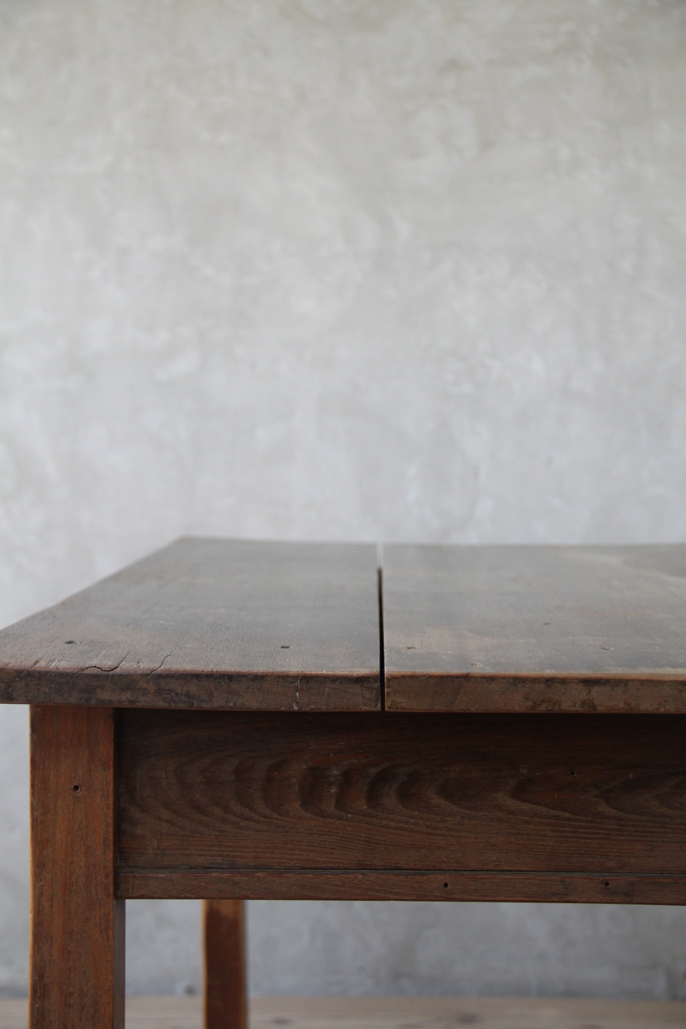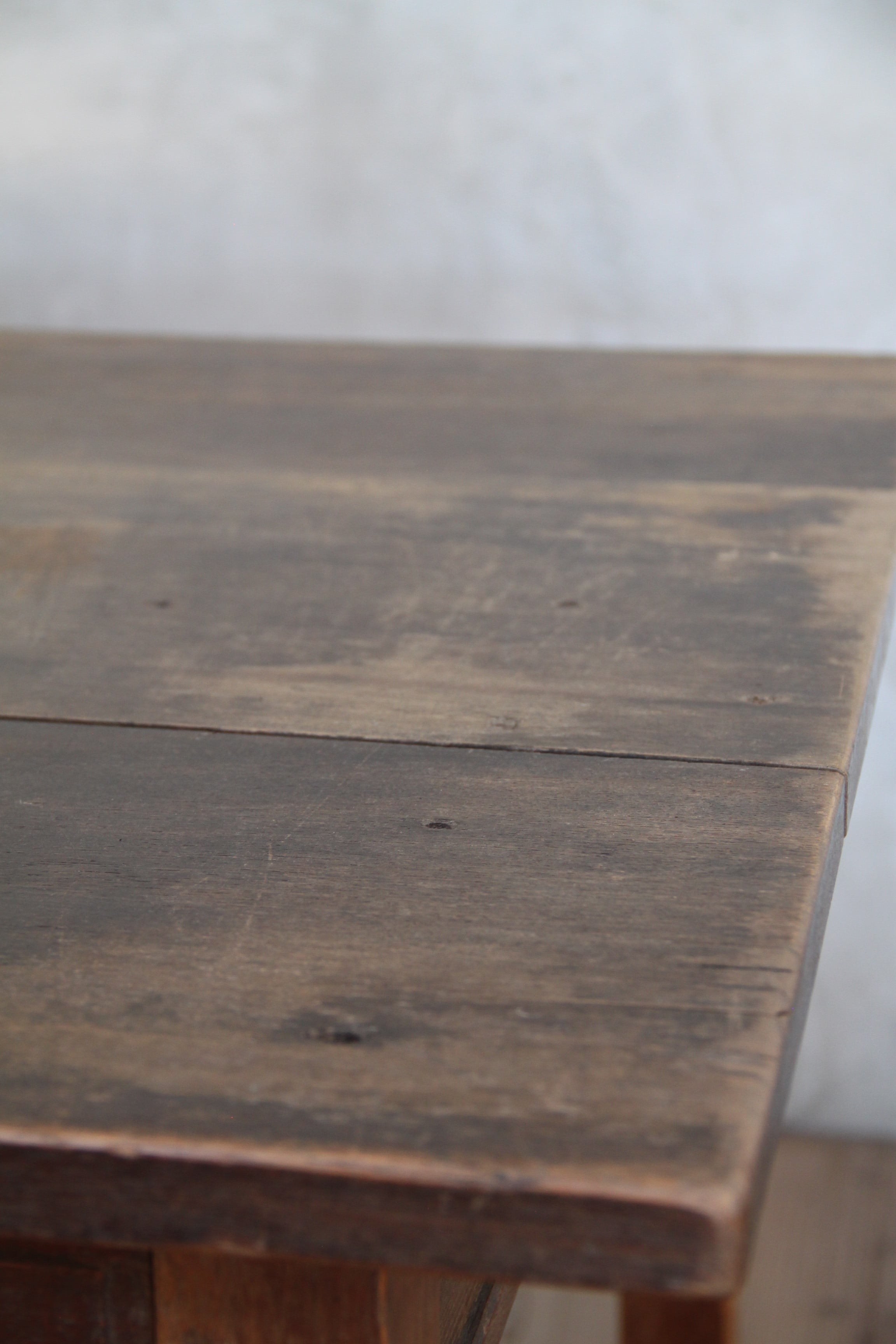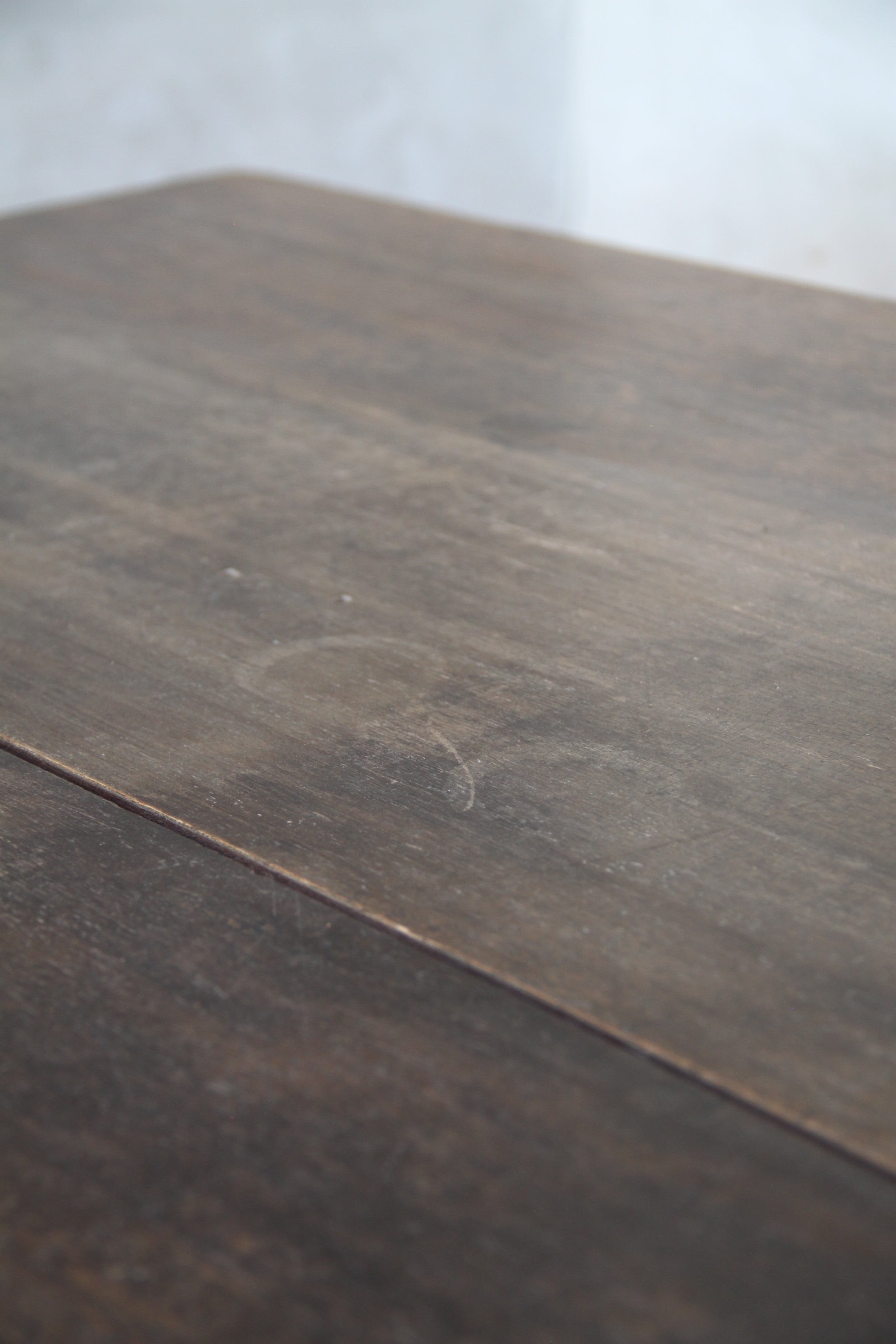 古家具や古家具の風合いを活かす為、素材に合わせ塗装を施し、汚れや輪染みを起こしにくいよう配慮しております。ウレタン等の樹脂塗装とは異なり、水分が付着したままの状態が続くと染みになる可能性がございますので、取り扱いにはご注意ください。