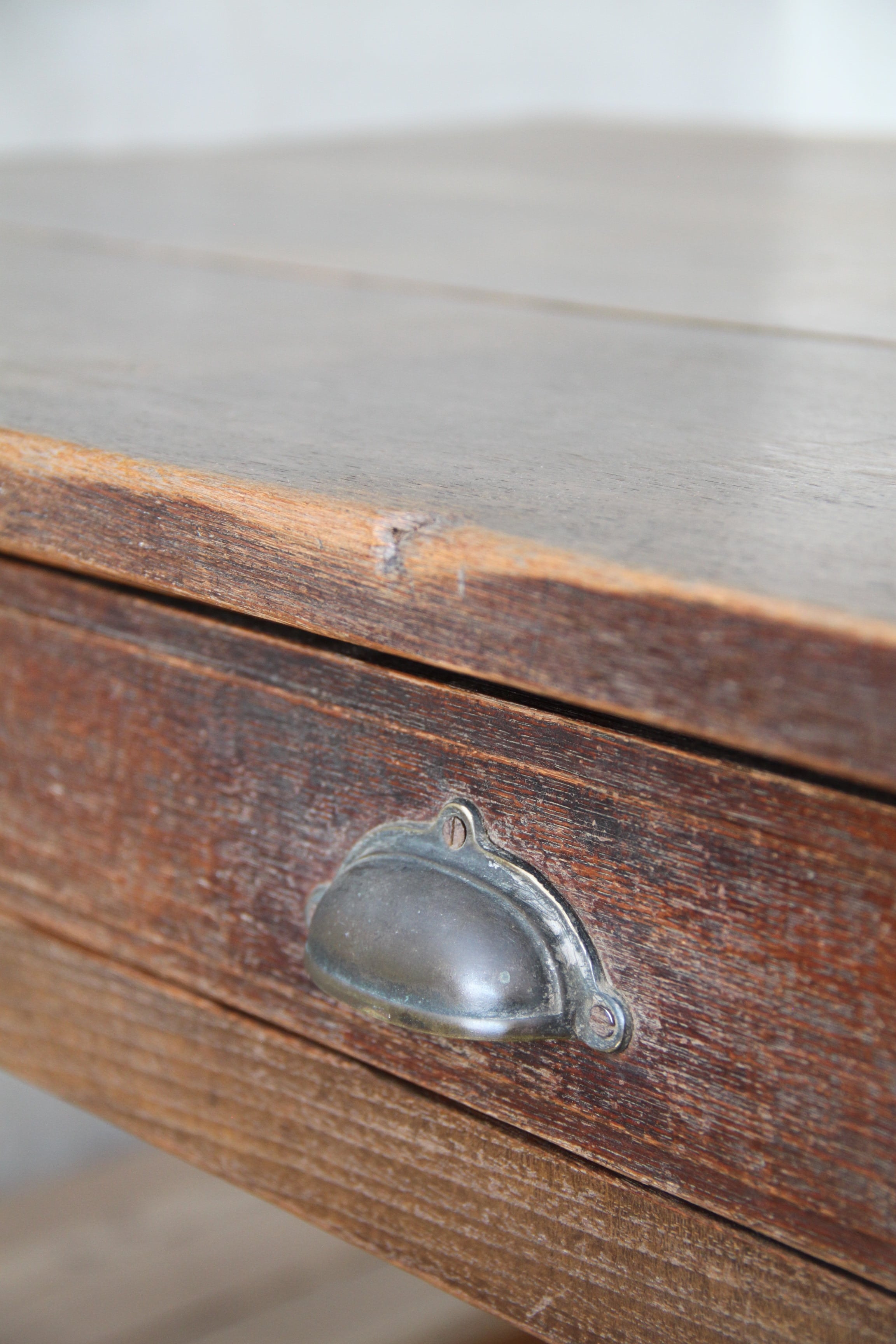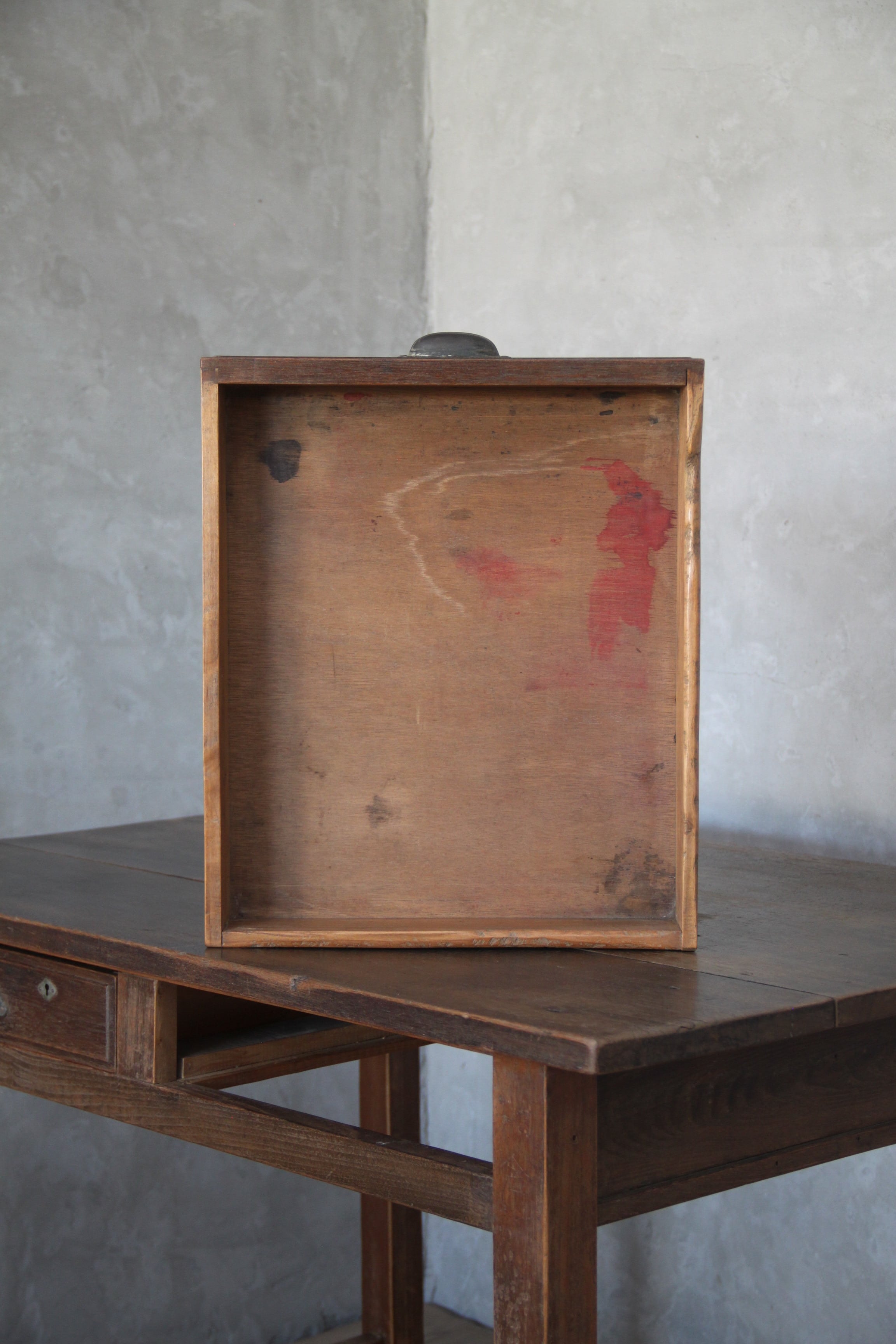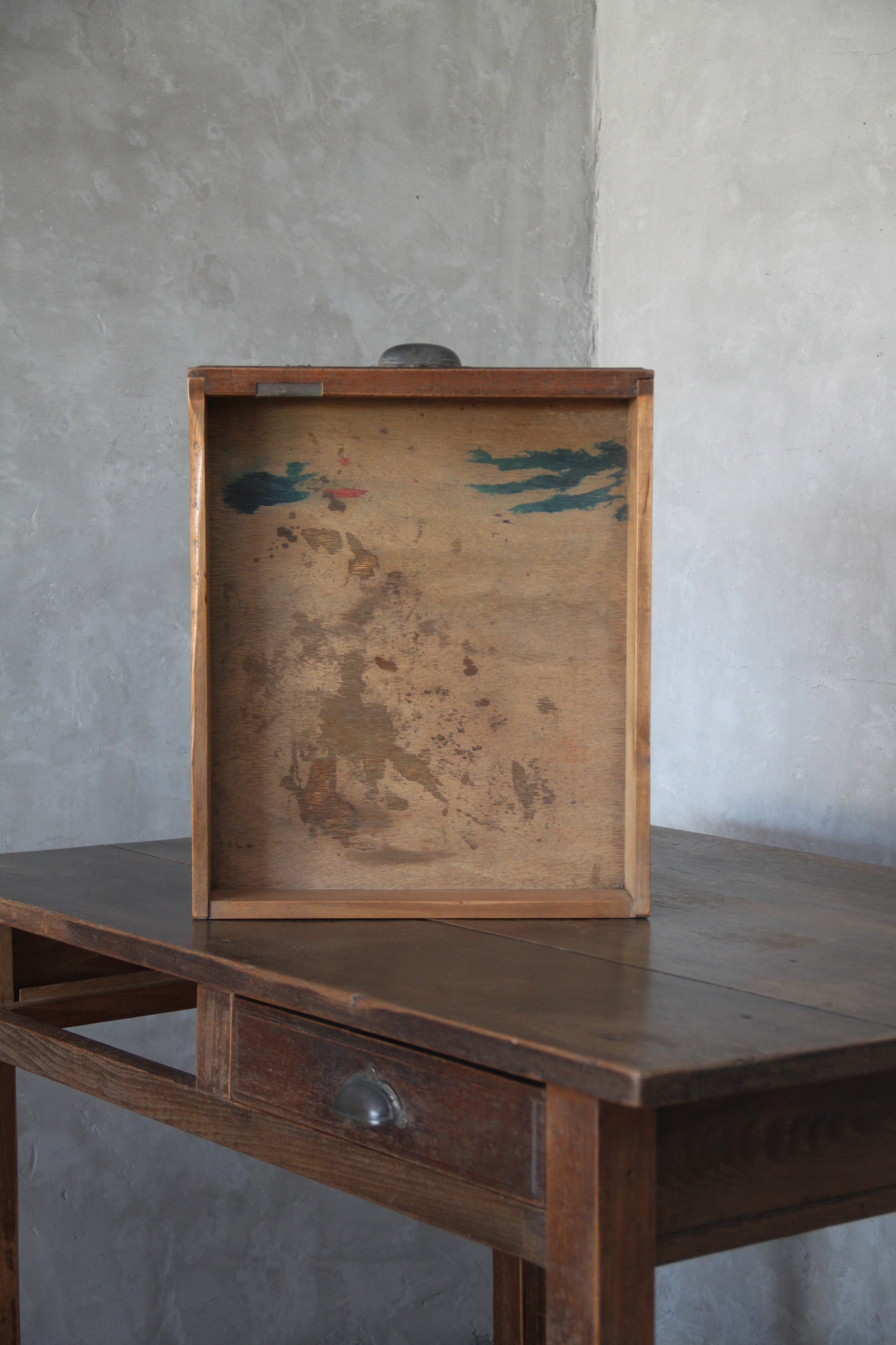 古家具や古家具の風合いを活かす為、素材に合わせ塗装を施し、汚れや輪染みを起こしにくいよう配慮しております。ウレタン等の樹脂塗装とは異なり、水分が付着したままの状態が続くと染みになる可能性がございますので、取り扱いにはご注意ください。