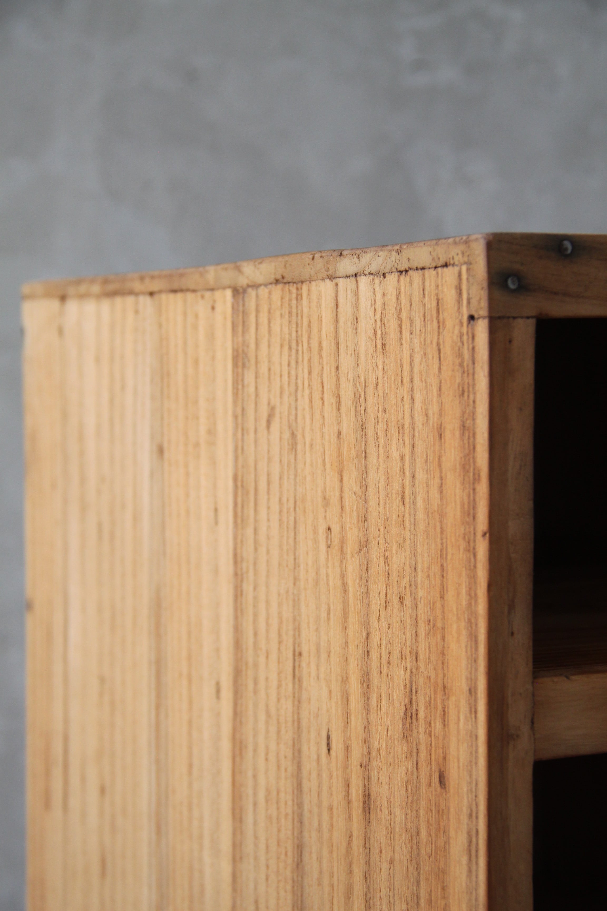 自社工房にて丁寧に洗浄・修繕を施しておりますが、商品の特性上、素材の経年変化により反りや歪み、部材の欠けなどが見られる場合がございます。