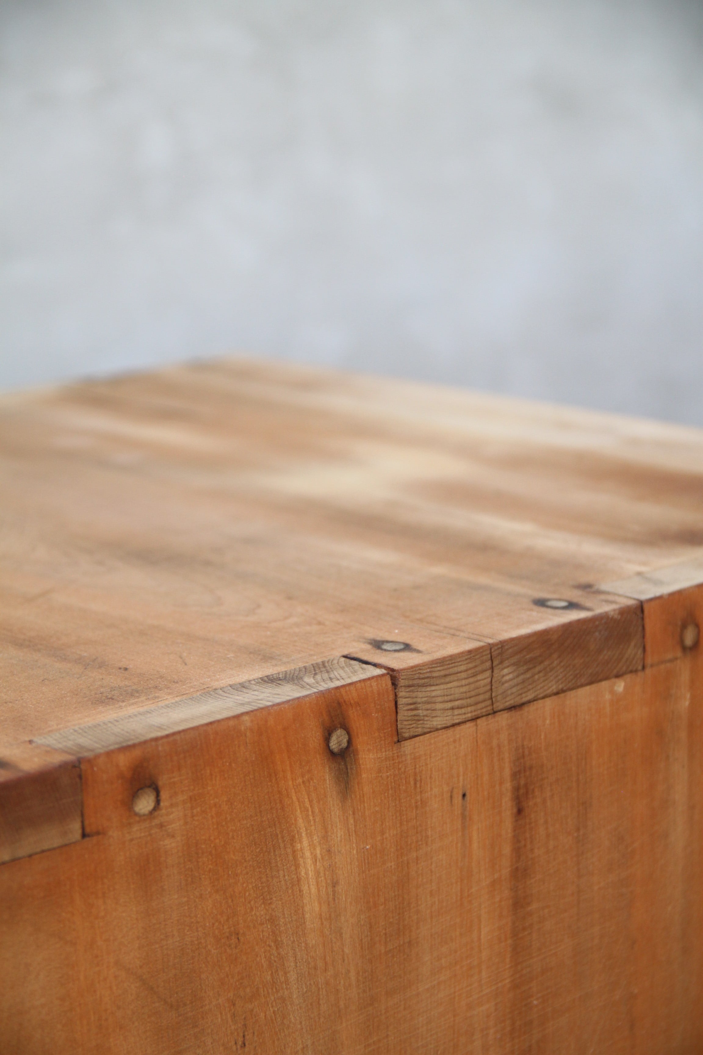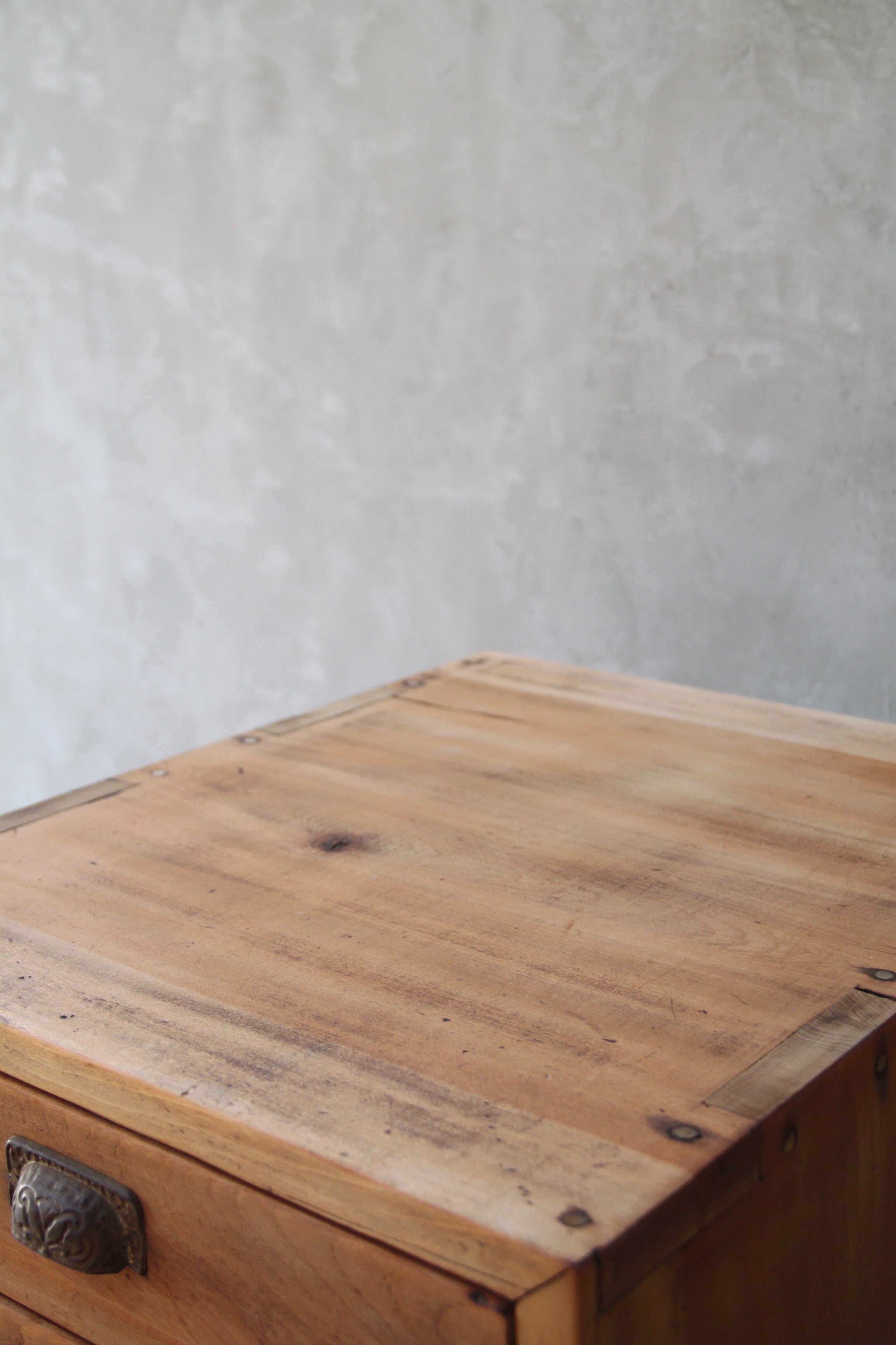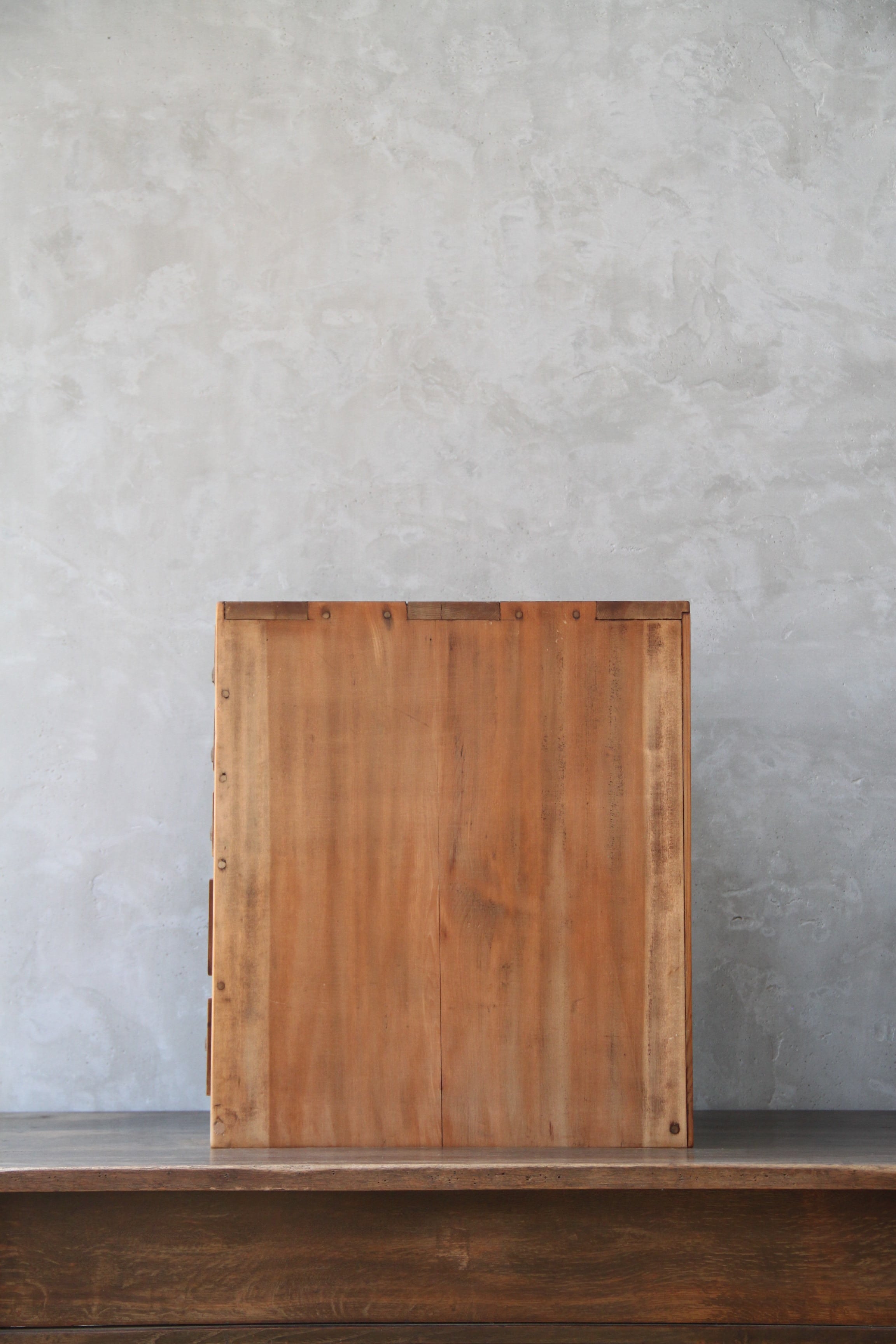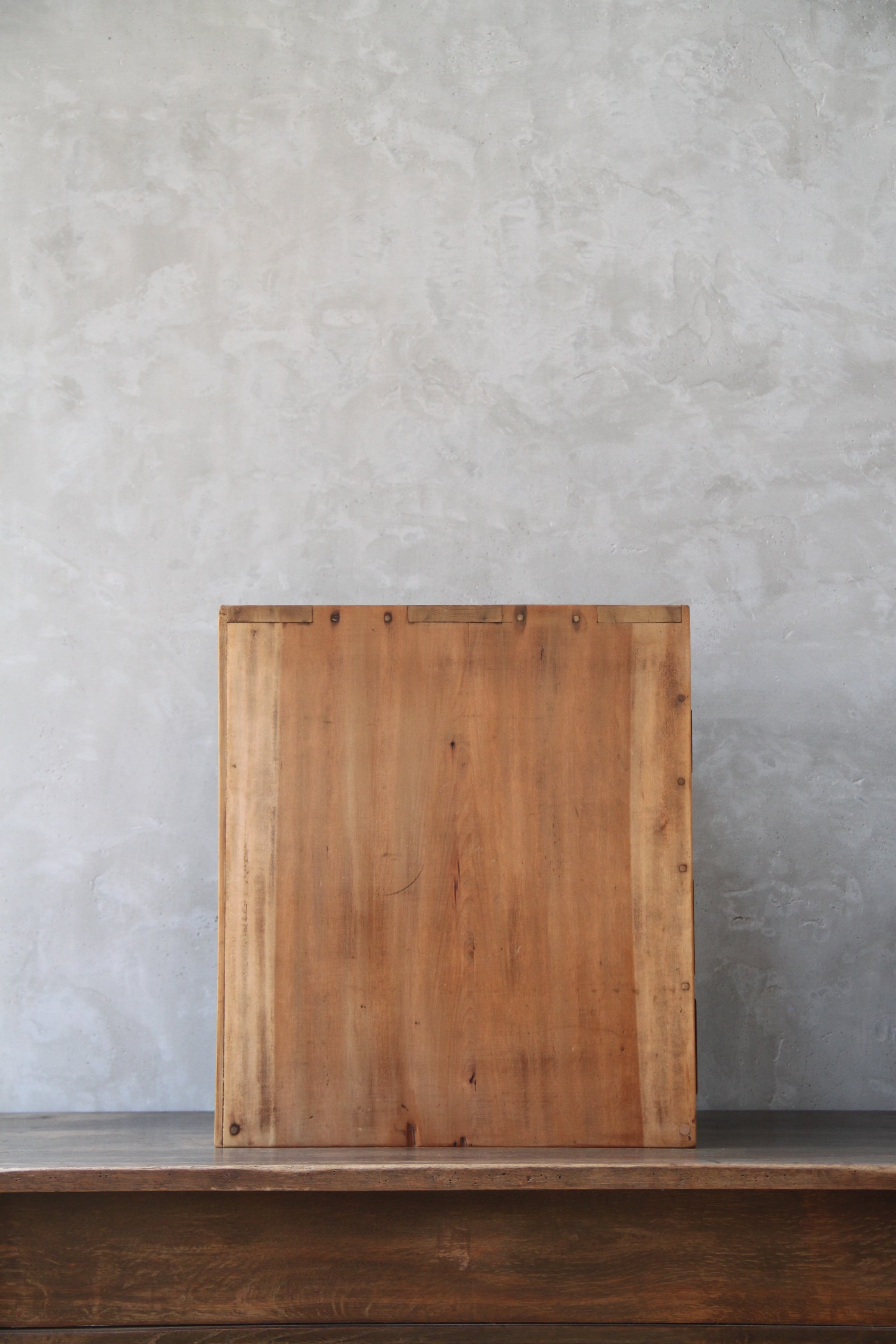 古家具や古家具の風合いを活かす為、素材に合わせ塗装を施し、汚れや輪染みを起こしにくいよう配慮しております。ウレタン等の樹脂塗装とは異なり、水分が付着したままの状態が続くと染みになる可能性がございますので、取り扱いにはご注意ください。