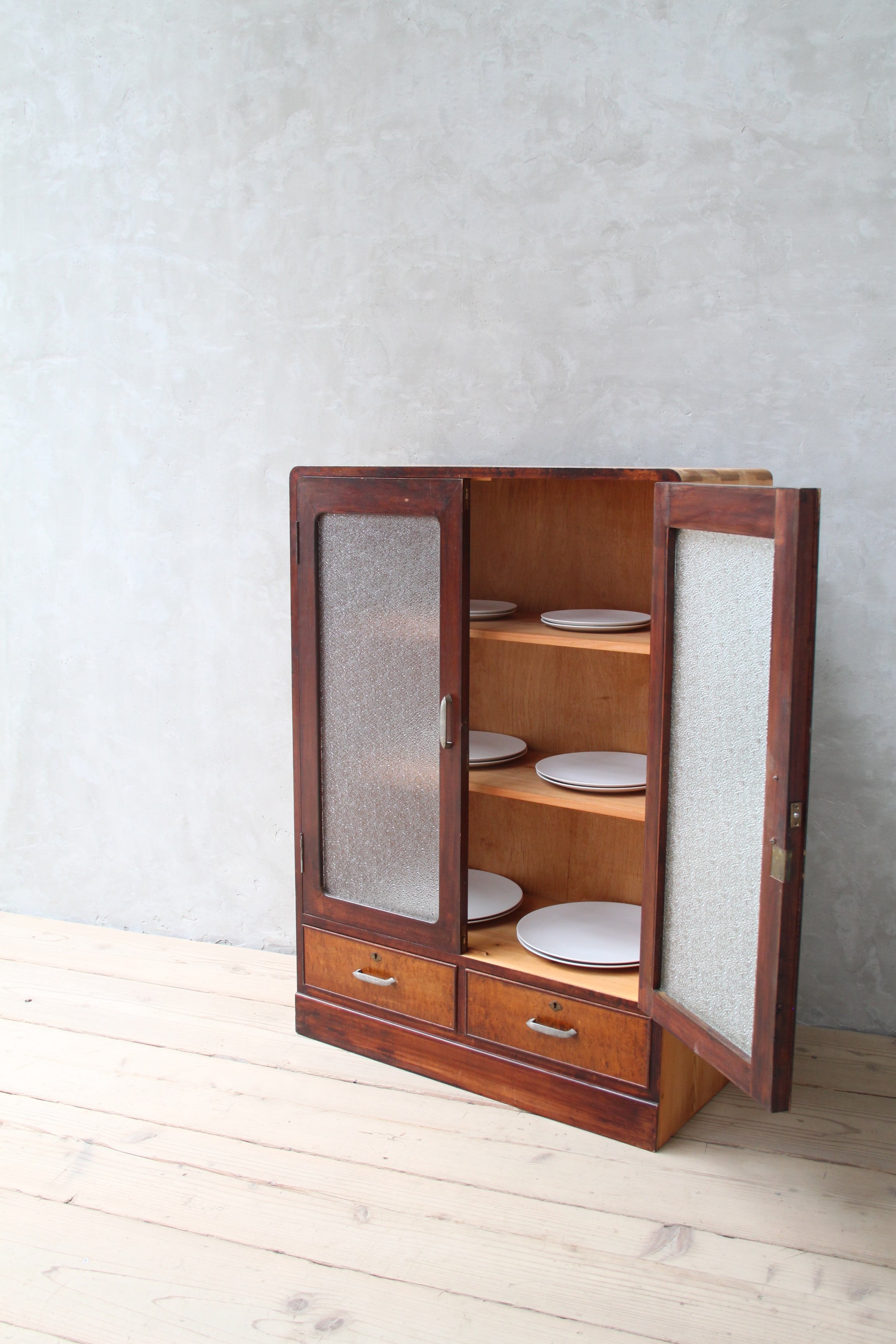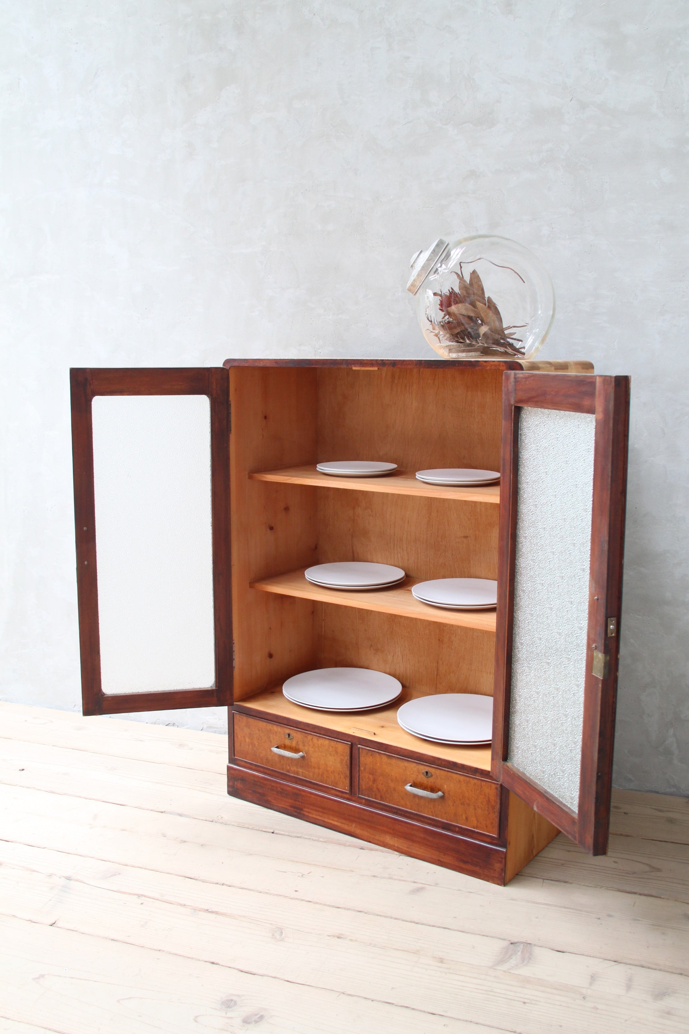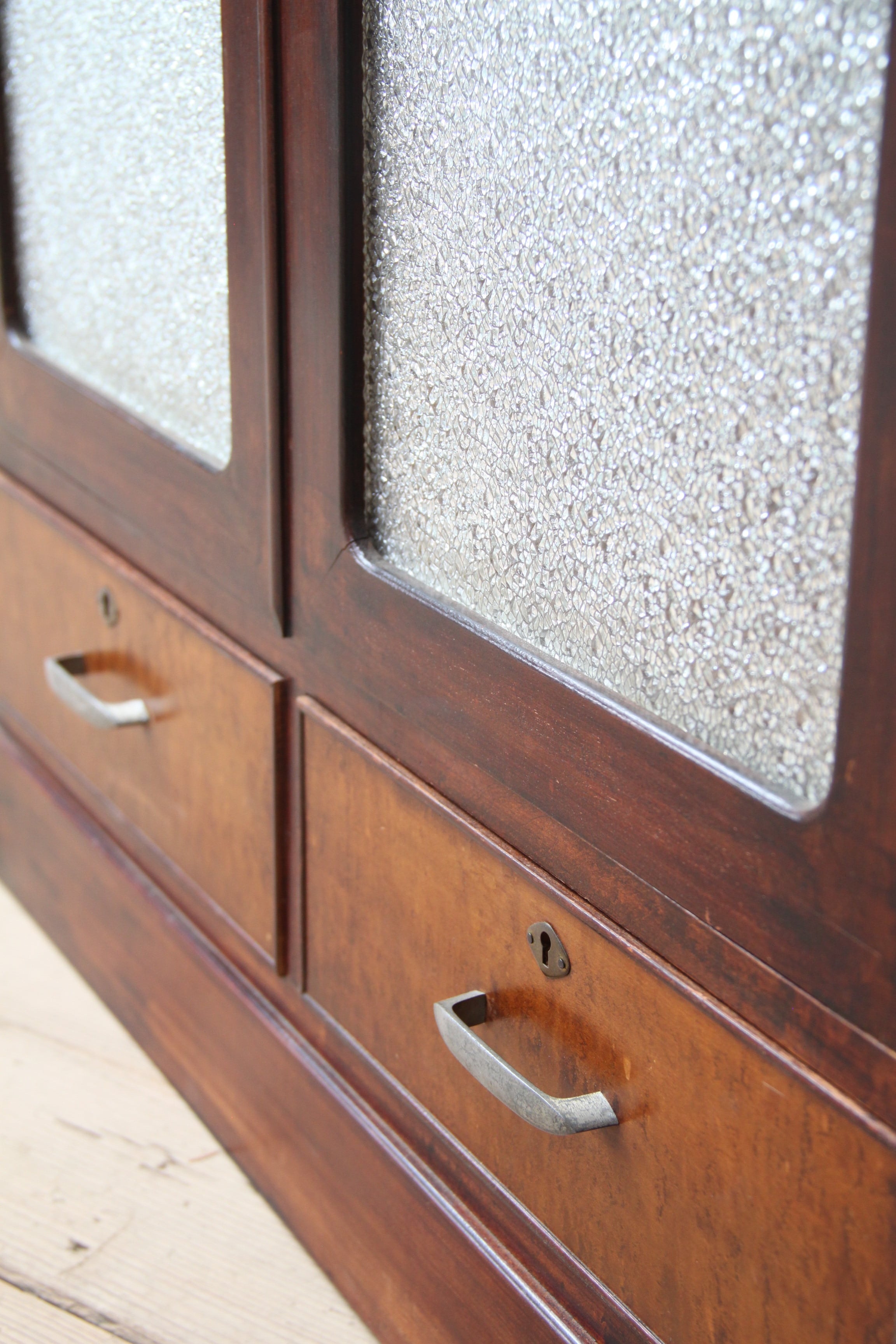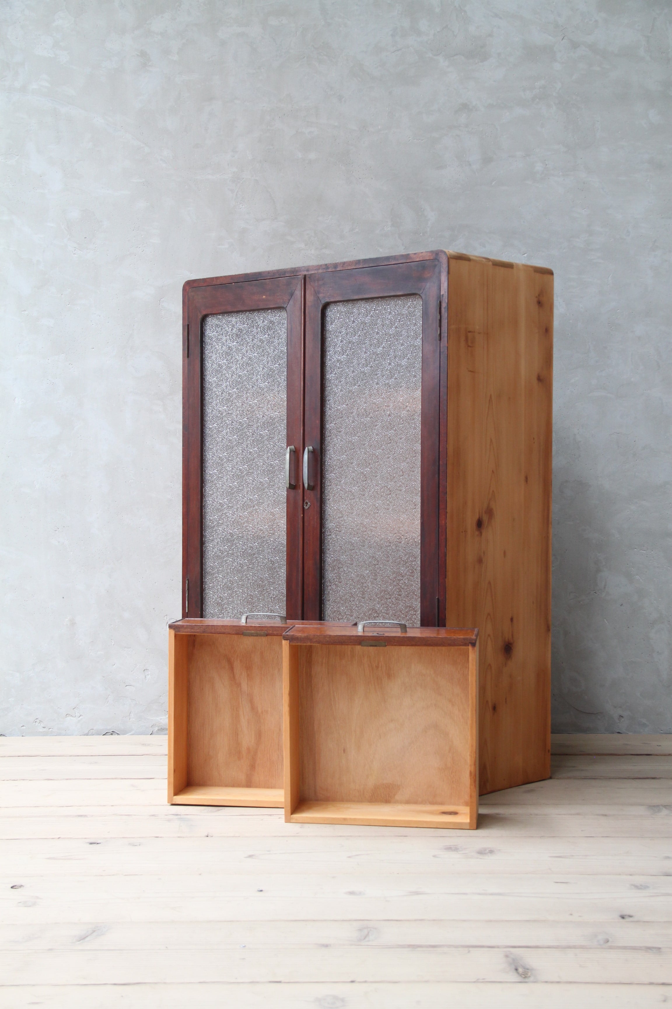 ダイヤガラスのガラスケース 古家具/アンティーク/ガラスケース/収納/ガラス棚/本箱/ダイアガラス