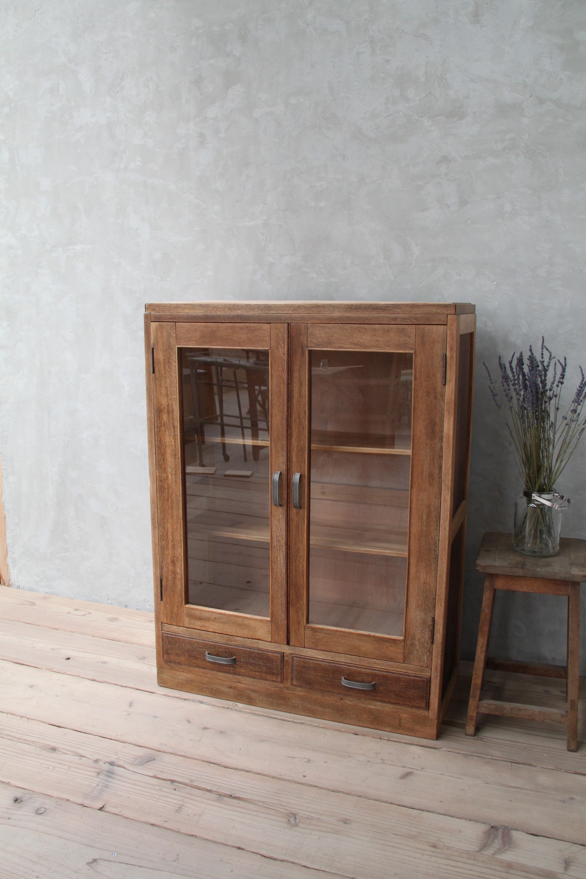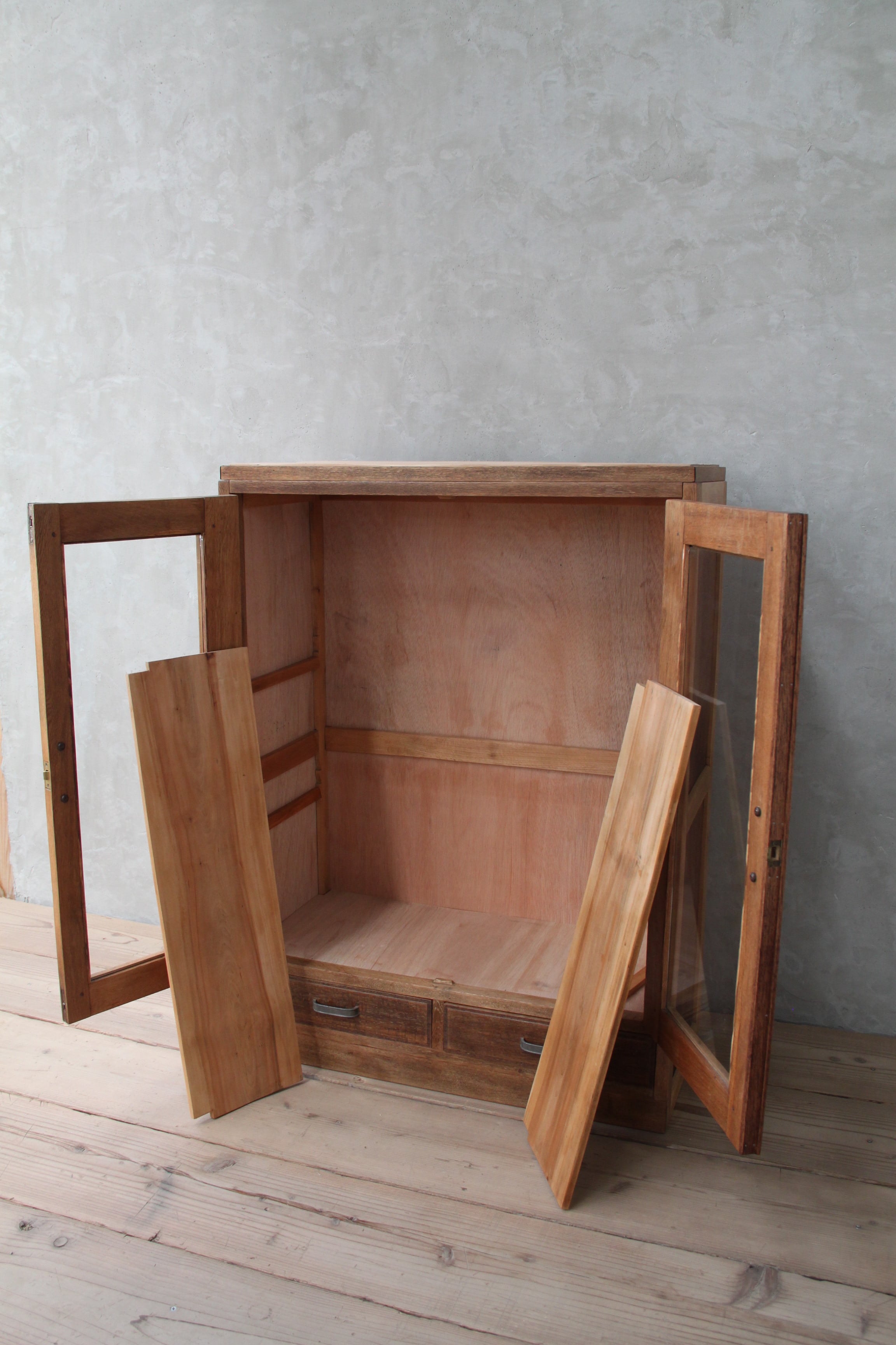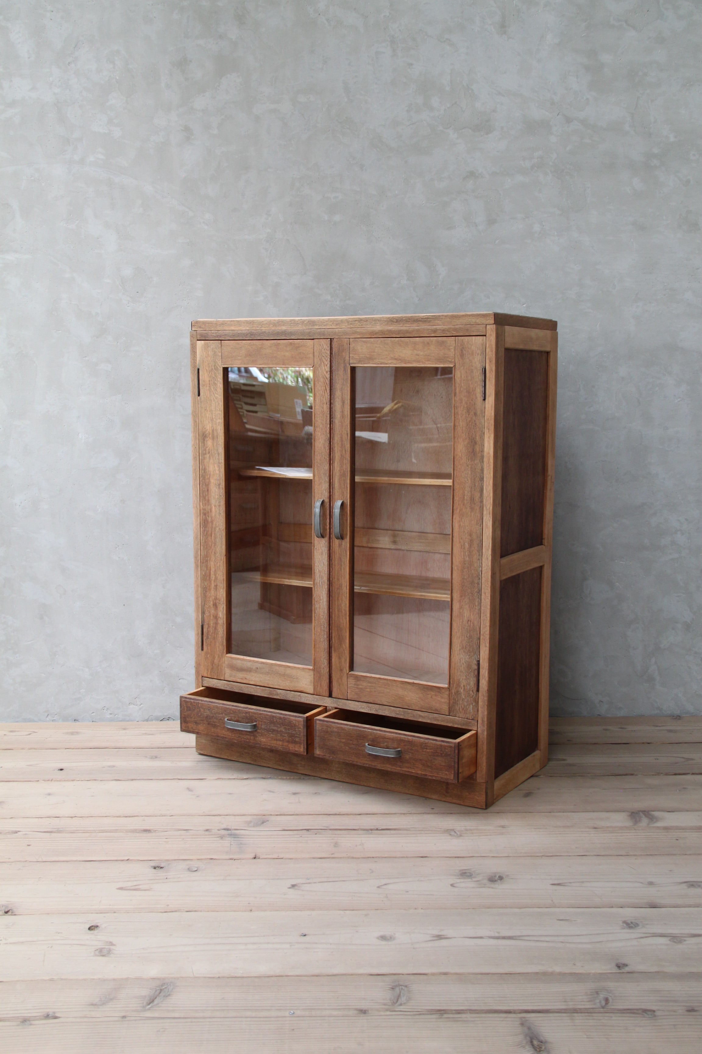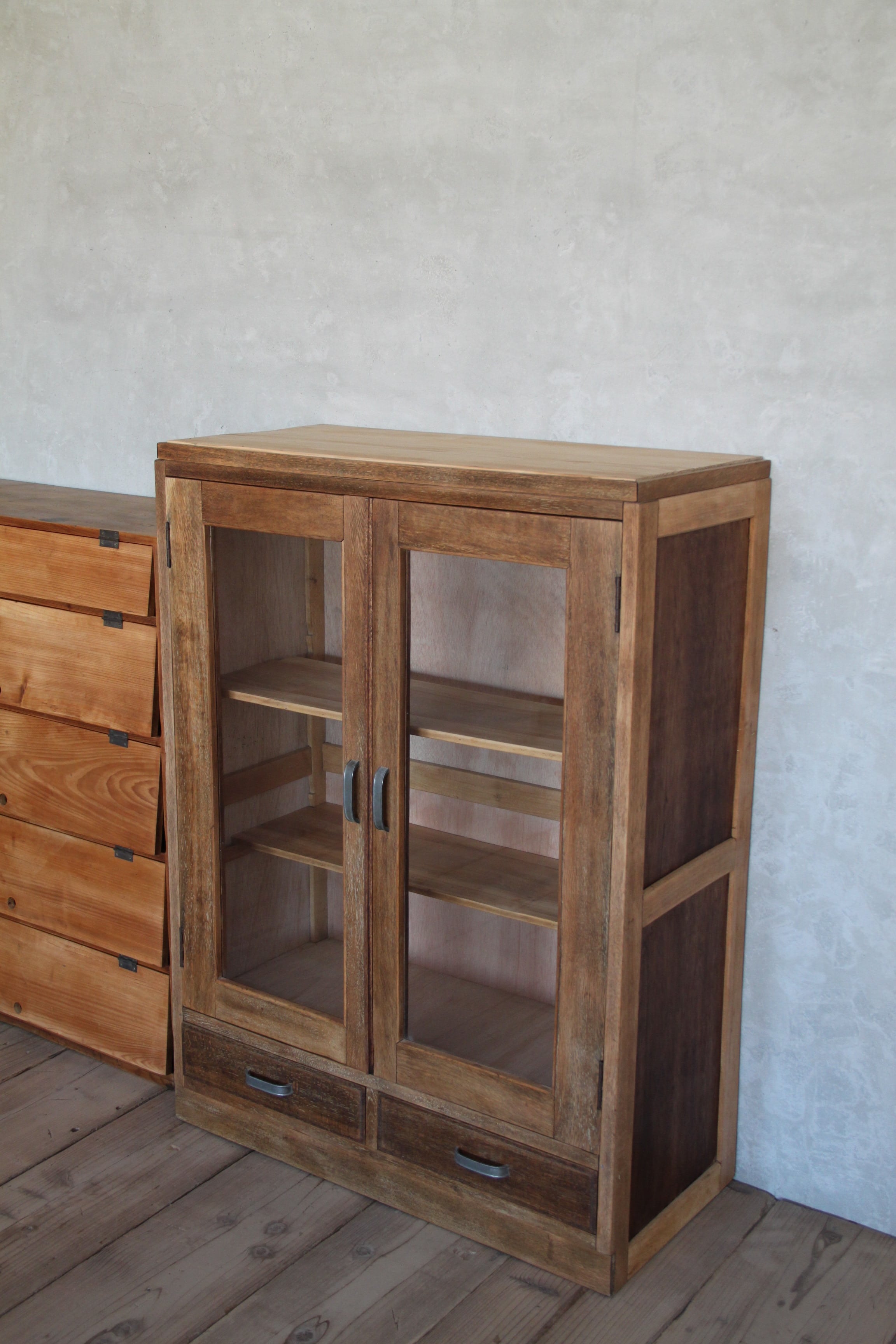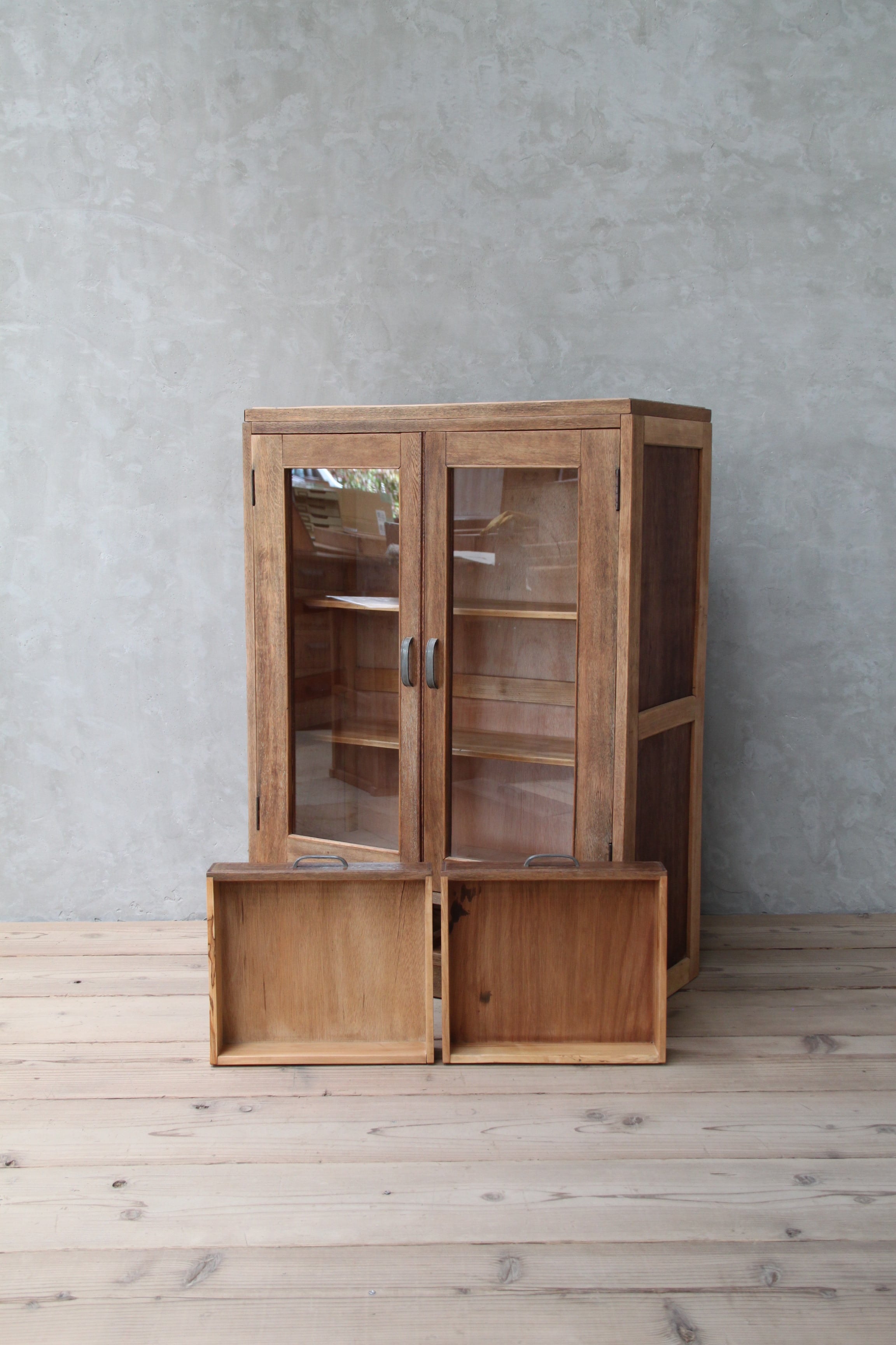 ガラス扉のケース 古家具/古道具/アンティーク/ガラス棚/引出/収納/棚